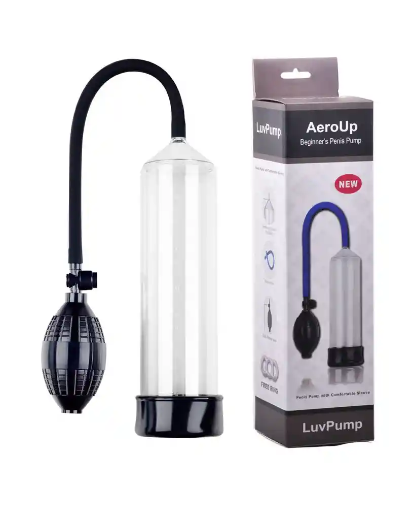 AeroUp / Beginner's Penis Pump - Cilindro con sello cómodo y seguro. - Manguera 100% de silicona, deja pasar el aire libremente y es casi imposible de romper. - Tubo de vacío transparente con medidas universales. - Válvula de aire fácil de usar con una sola mano. Cómo usar: Lubricar la base del cilindro y el pene. Inserta el pene en el cilindro. El cilindro debe presionarse firmemente contra la base del pene y área púbica para evitar el escape de aire. Comienza a bombear lentamente. Habrá una pequeña sensación de estiramiento del pene mientras el aire sale por la manguera. Para principiantes, es importante comenzar este proceso lentamente para evitar incomodidad. Recuerda activar la válvula de escape de aire en caso de sentir dolor. Continúa bombeando y liberando aire hasta que encuentres un nivel de presión adecuado. Asegurarse de que el aire no escapa y esperar 20 minutos. Puedes necesitar ajustar la succión durante este momento para mantener un vacío adecuado.