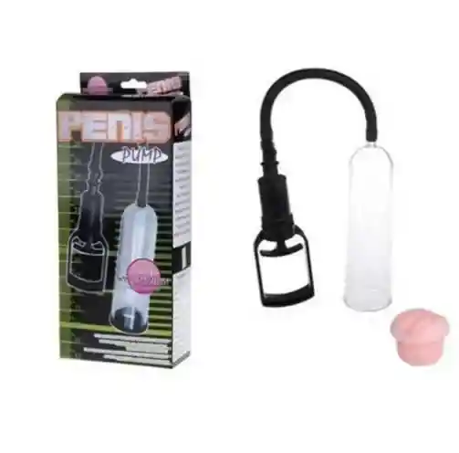 PENNIS PUMP es una bomba de vacío para pene que tiene usos médicos y eróticos. Los hombres que padecen de dificultades eréctiles pueden usarlas para estimular una erección que les permita tener el coito. También se puede usar para la masturbación. El aparato consiste en un cilindro de plástico o vidrio que se coloca sobre el pene lubricado, y una bomba manual o motorizada para crear succión. Conforme se va bombeando el aire hacia fuera del tubo, la sangre se va succionando dentro de los tejidos del pene, ayudando así a crear una erección. CONTENIDO:Tubo de vacío / succiónVagina realista artificial látex quirúrgico1