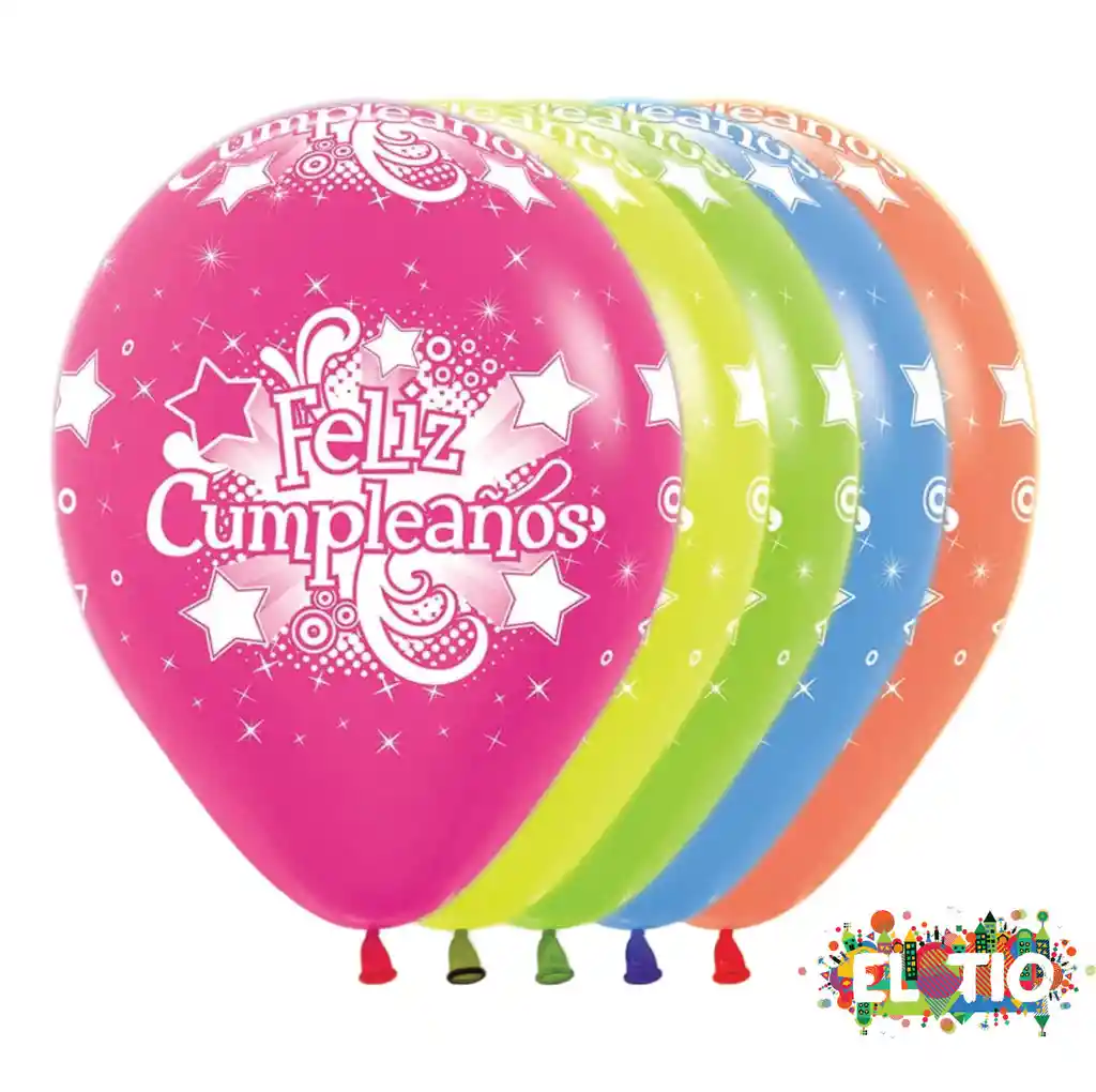 Bomba Feliz Cumpleaños Neon, paquete x10 unidades. Si desea inflar sus bomba con helio certificado flotación de 3 dias por favor escribir en el chat del pedido y con gusto lo atenderemos.