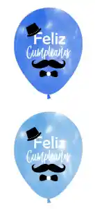Bomba, Globo De Feliz Cumpleaños Con Bigote Azul - X10