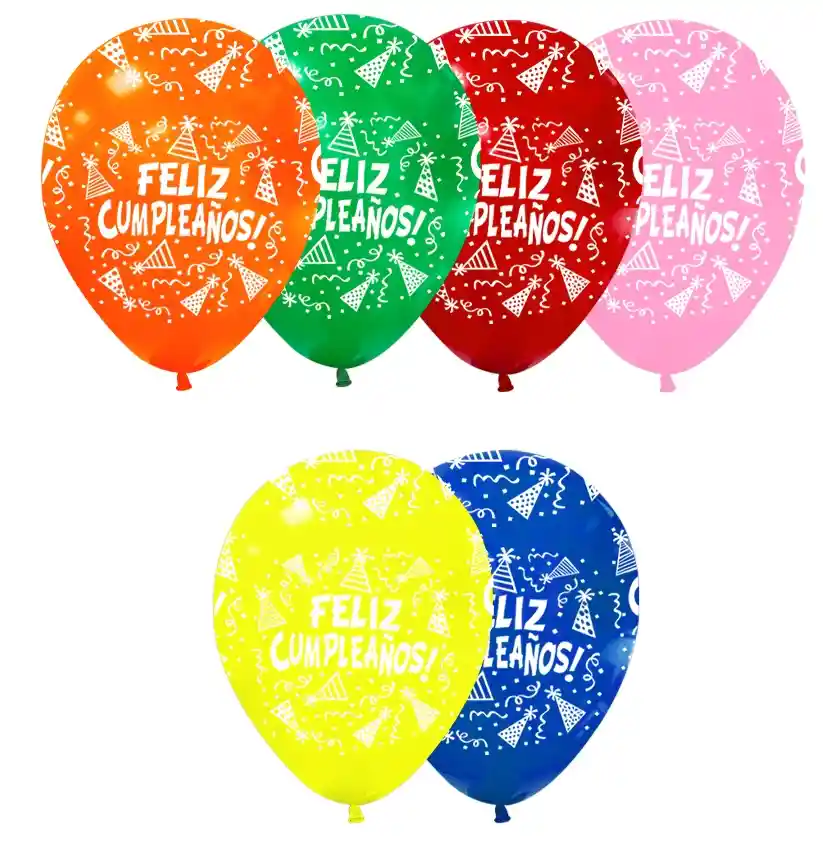 Bomba Globo Estampada Surtida "feliz Cumpleaños" R12 - 10 Und