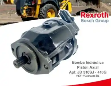 BOMBA HIDRUALICA DE PISTON AXIAL JD310SJ-410G MARCA BOSCH PG200235-BS Bomba hidraulica de piston axial Marca Bosch. Compatible con modelos de retroexcavadora o pajarita Jhonn Deere de llantas: - 410KC - 310SK Producto totalmente nuevo, en caja y empaque original Bosch, SOMOS IMPORTADORES DIRECTO DISTRIBUIDOR AUTORIZADO ENVIOS A TODO EL PAIS