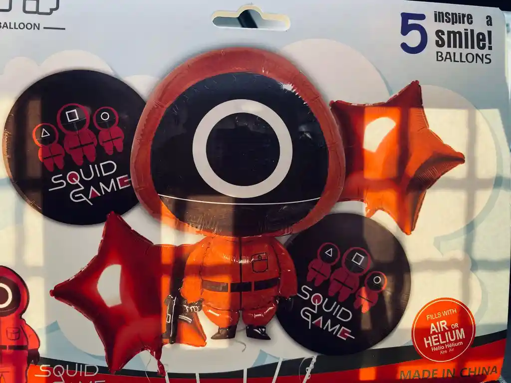 BOMBAS GLOBOS POR 5 PIEZAS DISEÑO EL JUEGO DEL CALAMAR PARA DECORACION DE FIESTAS NIÑO O HOMBRE O MUJER