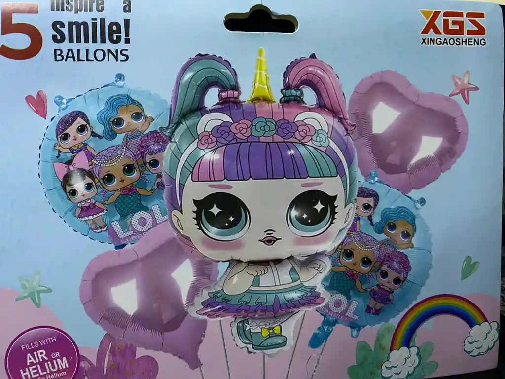 BOMBAS GLOBOS POR 5 PIEZAS DISEÑO MUÑEQUITAS LOL PARA DECORACION DE FIESTAS MUJER