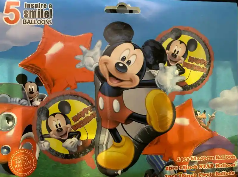 BOMBAS GLOBOS POR 5 PIEZAS DISEÑO MICKEY MOUSE PARA DECORACION DE FIESTAS NIÑO O HOMBRE O MUJER
