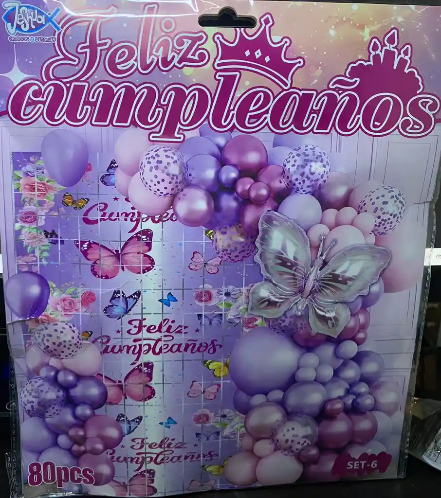 BOMBAS GLOBOS POR 80 PIEZAS TIPO ARCO FELIZ CUMPLEAÑO COLORES LILA, ROSADO Y MORADO PARA DECORACION DE FIESTAS MUJER