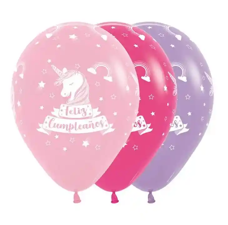 Bombas Globos R12 Feliz Cumpleaños Unicornio Surtido X 10 Und Sempertex