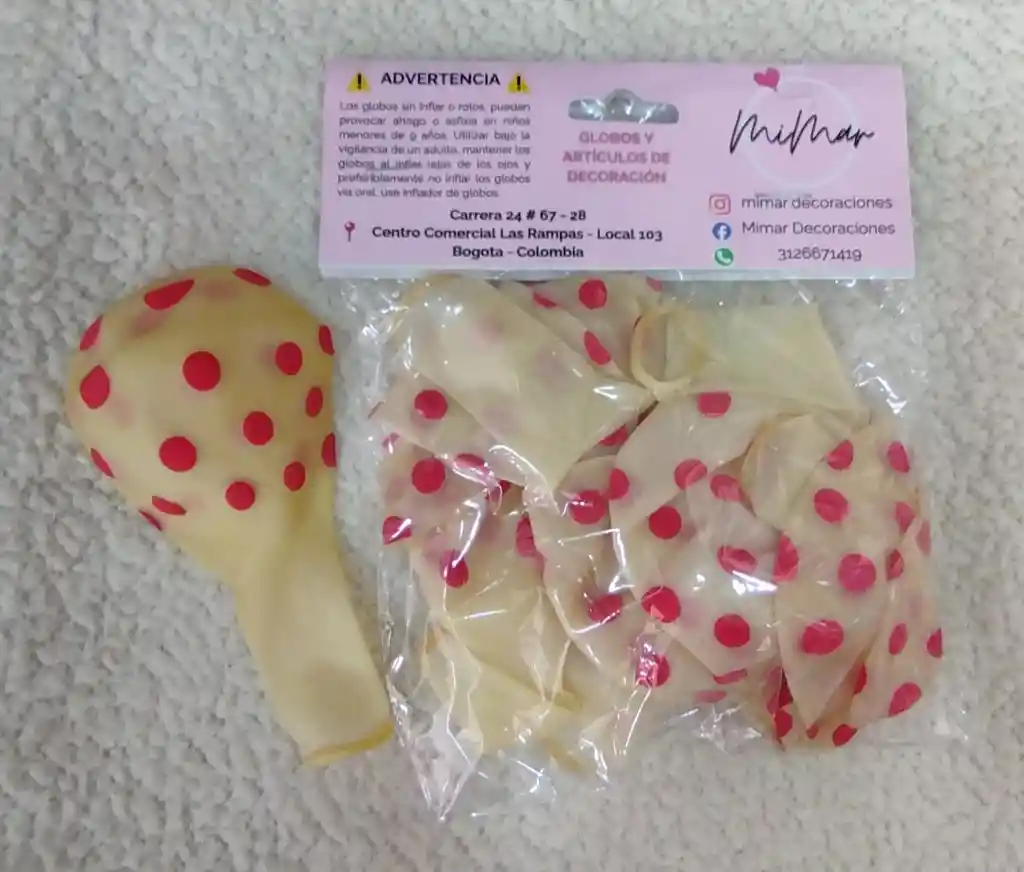 Bombas polka R12 transparente color rojo paquete x 10 unidades