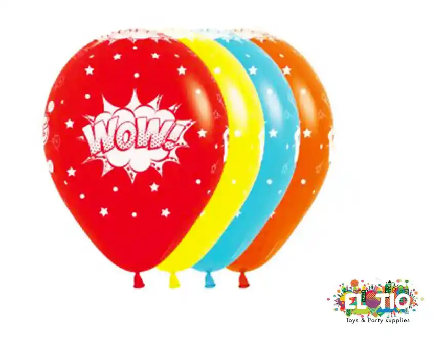 Bombas Super Heroes Comic R12, paquete x10 unidades. Si desea inflar sus bombas con helio por un costo adicional puede escribir por el chat del pedido y con gusto le ayudaremos.