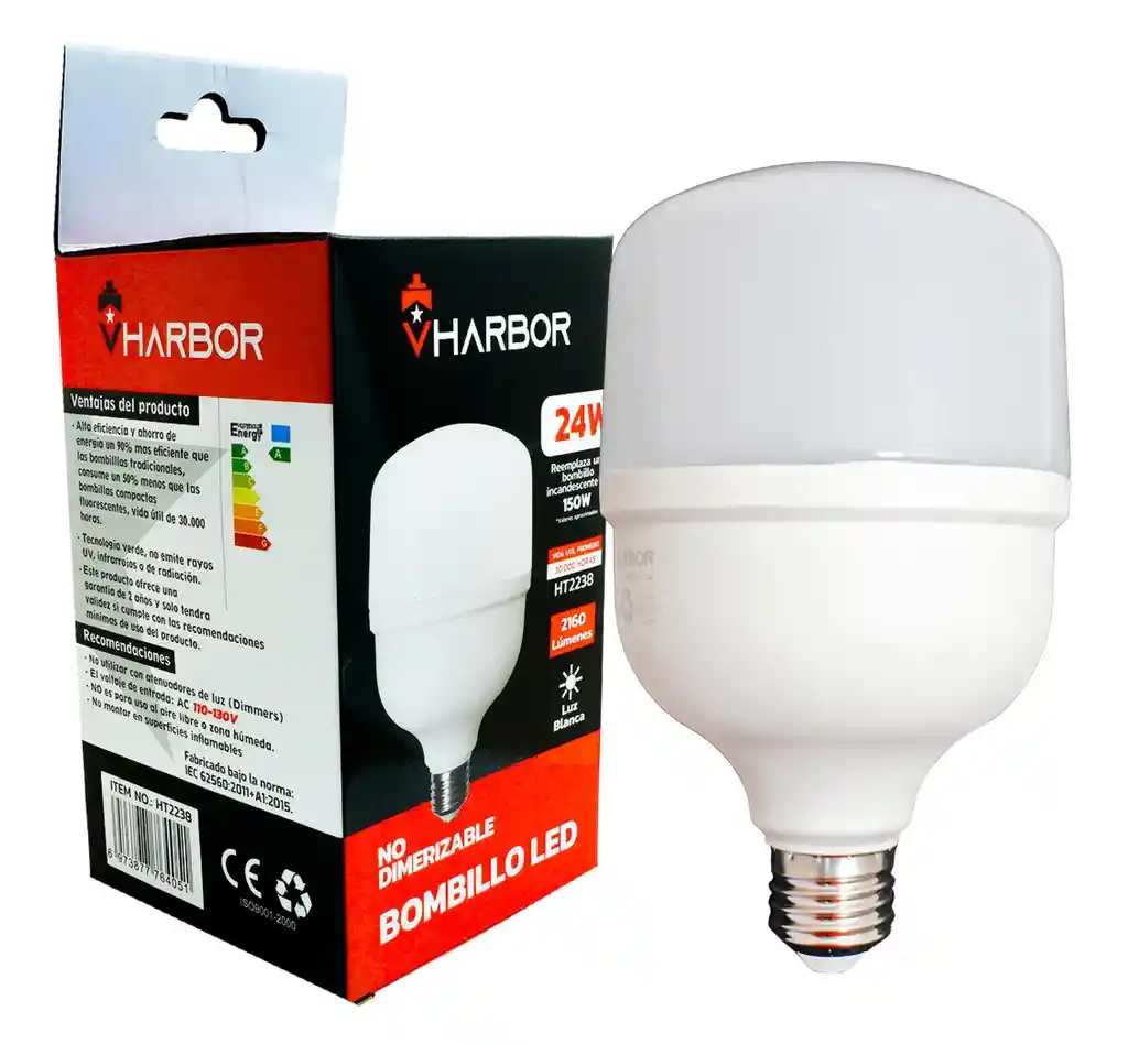 BOMBILLO LED 24W VHARBOR LUZ DIA E27 MULTIVOLTAGE (6500K)(T100)(HT2238)