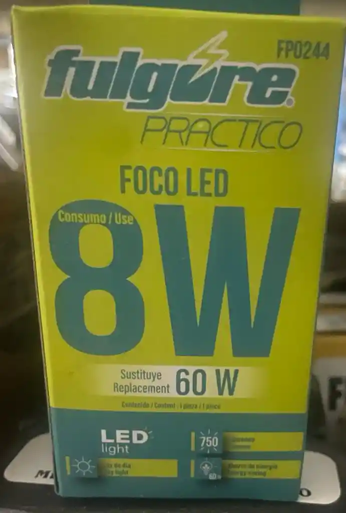 Bombillo led 8w luz blanca, ideal para espacios pequeños como baños, armarios, closet, pasillos pequeños