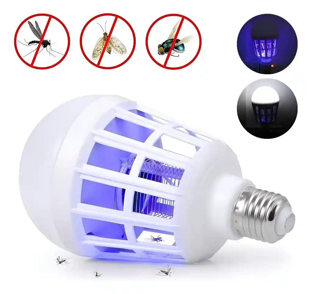 Tecnología: Utiliza luz LED, generalmente azul o ultravioleta, para atraer a los insectos y una red eléctrica interna para eliminarlos. Funcionalidad: Combina iluminación convencional con la función de trampa para insectos. Uso: Se enrosca en portalámparas estándar y es adecuado para interiores, como dormitorios o salas de estar. Seguridad: Está diseñado para ser utilizado sin necesidad de químicos repelentes.