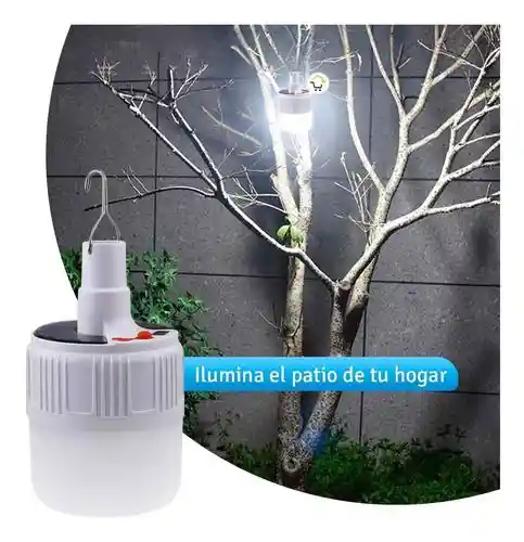 La lámpara es perfecta para cualquier situaciones en el hogar ,puesto de trabajo,senderismo,cuando se va la energía eléctrica usando está como luz de respaldo, es perfecta para usarla en el patio trasero de tu hogar Ideal para ir de camping . Gracias a su gancho en acero puede colgarse y transportarse de fácil manera, ideal para colgar en ramas, techos, parte superior interna de la carpa o colocar sobre la mesa o el césped. Bajo consumo, alto brillo, rendimiento estable, ahorro de energía, protección del medio ambiente. Ideal para realizar senderismo nocturno para los amantes de las caminatas extensas que se prolongan hasta por las noches. Carga fácilmente la lámpara por medio del panel solar exponiéndola al fuerte sol de la mañana y tarde o si es un día nublado cárgala por medio del cable usb. Carga 8 horas Duracion carga 6 a 8 horas
