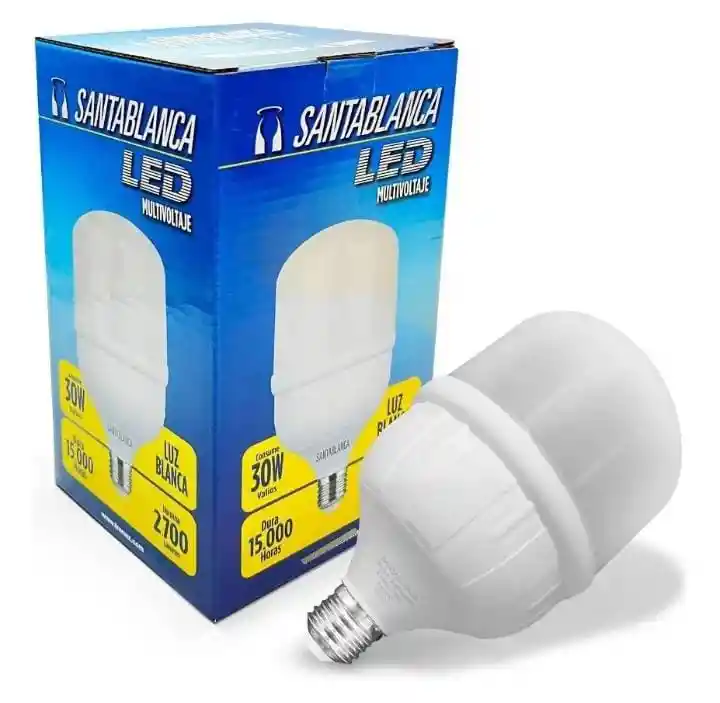 Presentamos el Bombillo Santablanca Led de 30 W, diseñado para iluminar tus espacios con una luz brillante y eficiente. Con una temperatura de color de 6500 K, este bombillo proporciona una luz blanca fría, ideal para oficinas, cocinas y áreas de trabajo donde se requiere claridad. Su potente flujo luminoso de 2500 lm garantiza un ambiente luminoso y acogedor. Gracias a su tecnología LED, el Bombillo Santablanca es altamente eficiente energéticamente, clasificado con una eficiencia A en Colombia. Esto no solo significa un consumo reducido de energía, sino que también contribuye a la sostenibilidad, ayudando a disminuir la huella de carbono en el hogar o la oficina. La rosca E27 permite una fácil instalación en la mayoría de los portalámparas convencionales. Este modelo no cuenta con funciones giratorias ni conectividad Wi-Fi, lo que lo convierte en una opción accesible y práctica para quienes buscan una iluminación efectiva sin complicaciones tecnológicas. Con una potencia de 30 W, este bombillo es perfecto para quienes desean maximizar la iluminación sin comprometer su consumo energético. El Bombillo Santablanca Led 30 W es la elección ideal para quienes buscan calidad, eficiencia y un alto rendimiento en iluminación. Dale a tus espacios la luz que se merecen y disfruta de un ambiente bien iluminado y agradable.