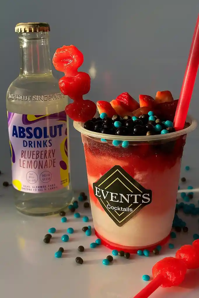 octel granizado a base de smirnoff con explosion de frutos rojos y trozos de fresa con burbujas explosivas.