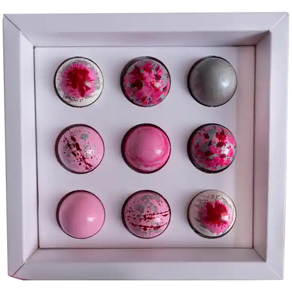 Bombones de Chocolate Real al 53% de Cacao. Vienen Con Ganache Rellenos de Maracuyá, Café, Crocante de Chocolate y Caramelo