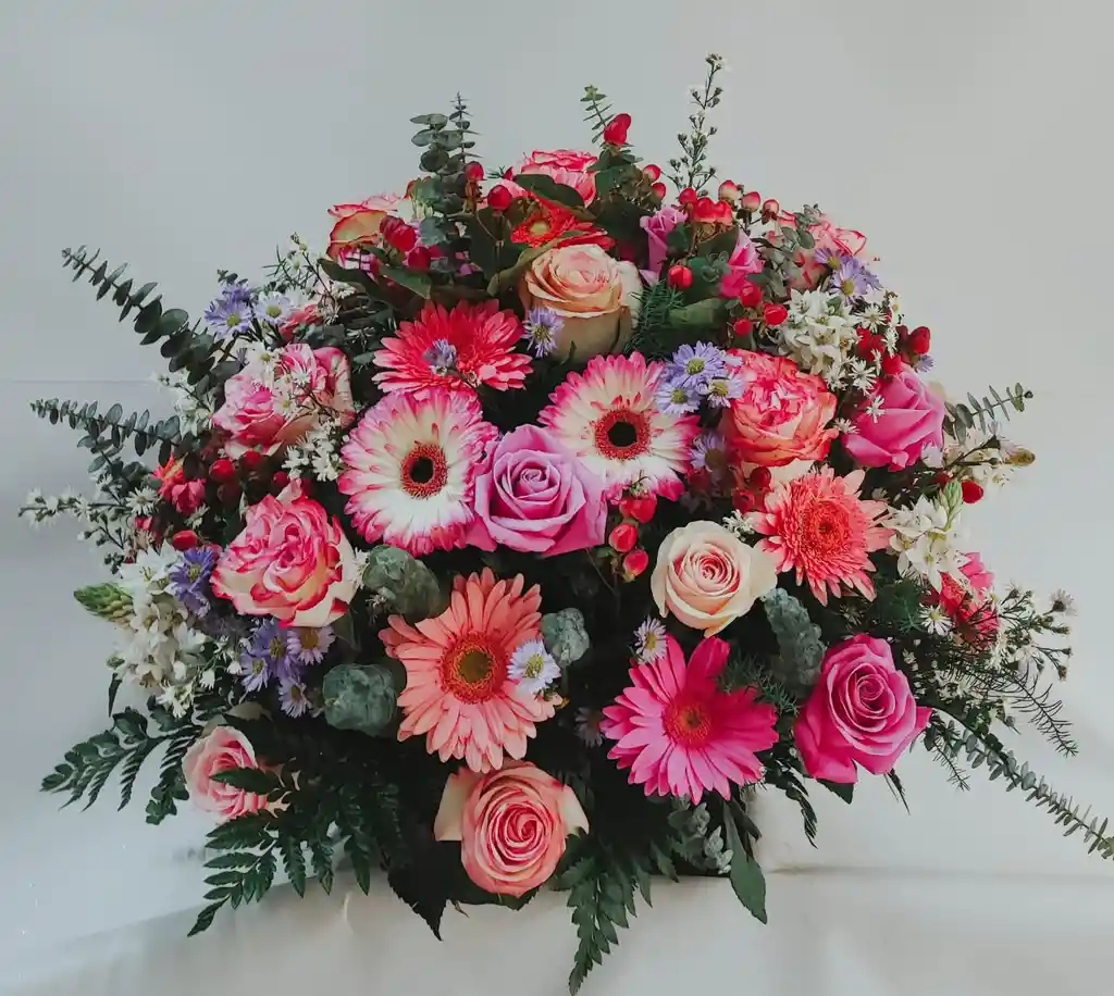 HERMOSO BOMBON DE FLORES VARIADAS TONOS ROSADOS
