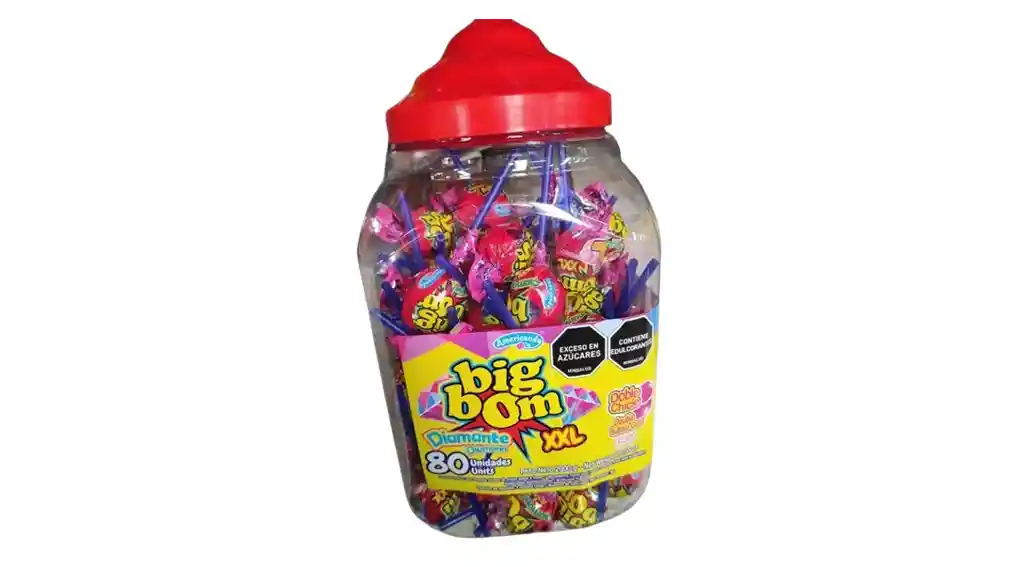 La Bombonera Big Bom Diamante XXL contiene 80 unidades de caramelos tipo bombón con un centro líquido y un sabor frutal intenso. Presentada en un envase práctico y llamativo, es ideal para compartir en reuniones, fiestas o como surtido para negocios. Su tamaño extra grande y variedad de sabores la convierten en una opción atractiva para quienes buscan un dulce diferente y de gran impacto.