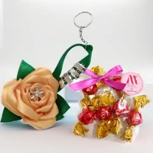 Bombones de chocolates rellenos con un lindo llavero de rosa
