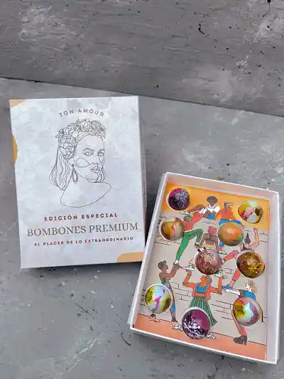 Contiene 9 bombones con diseños únicos rellenos de: macadamia, café caramelo, maracuyá, ganache de frutos rojos. Ideal para cualquier ocasión y en especial para el día de la mujer.