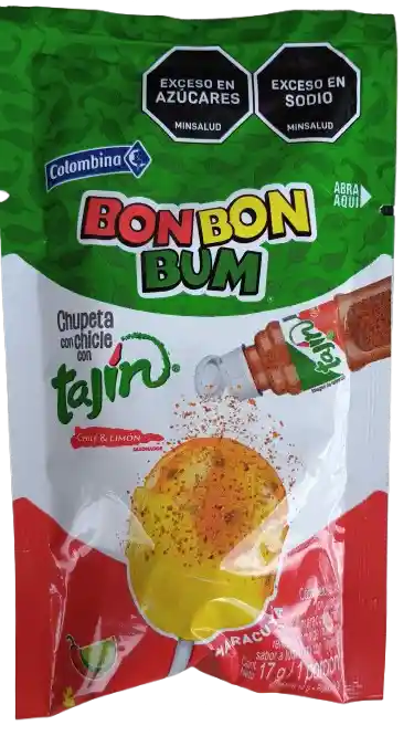 Bon bum con tajin en forma de chupeta maracuya