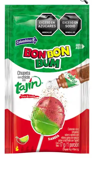 Bon Bon bum sandía chupeta con chicle con Tajín