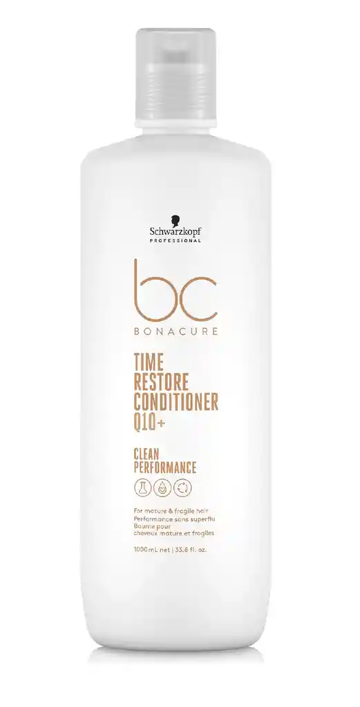 Schwarzkopf Bonacure Time Restore Champú 1000 ml Champú vegano antienvejecimiento con Q10 para cabello maduro y frágil. Limpia suavemente y fortifica el cabello maduro. Protege frente a los signos visibles del envejecimiento para un cabello suave, brillante y con una elasticidad mejorada. Libre de ingredientes de origen animal, sulfatos: Sodium Lauryl Sulphate (SLS) y Sodium Laureth Sulphate (SLES), siliconas y colorantes artificiales. Los champús libres de sulfatos tienden a realizar menos espuma, pero limpian igual de bien que los otros champús. Fantástico para cabello largo que es más maduro, ya que ayuda a fortificarlo y proporciona una sensación de cabello hidratado hasta 48 horas. Presentamos la Tecnología Avanzada que contiene el Complejo Vegan Care con Queratina Vegana Alternativa + Q10+. Los productos para el cabello profesionales de Bonacure Time Restore aprovechan nuestro brillante complejo antienvejecimiento para eliminar de forma inmediata los signos visibles del envejecimiento mientras estimulan la síntesis natural de queratina del cabello. Bonacure Clean Performance contiene el poder de la Queratina Vegana en una fórmula limpia profesional. Modo de empleo: Aplicar el champú sobre cabello mojado. Masajear y enjuagar bien. La botella está realizada con un 97% de materiales reciclados. El packaging es reciclable.