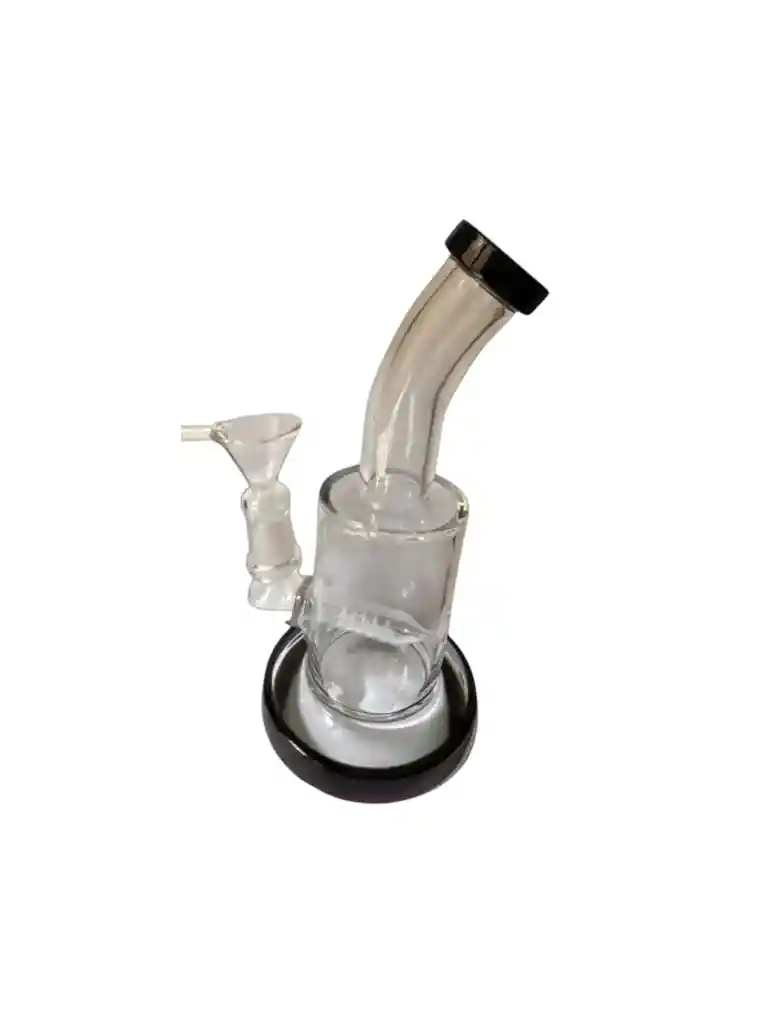 Este bong es un accesorio de vidrio artístico soplado, con diseño curvo estilo “cuello de cisne” y base redonda tipo esfera. Tiene detalles en tonos rojos y dorados que le dan un acabado elegante y llamativo. 🔥