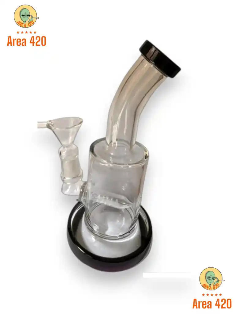 Este bong es un accesorio de vidrio artístico soplado, con diseño curvo estilo “cuello de cisne” y base redonda tipo esfera. Tiene detalles en tonos rojos y dorados que le dan un acabado elegante y llamativo. 🔥