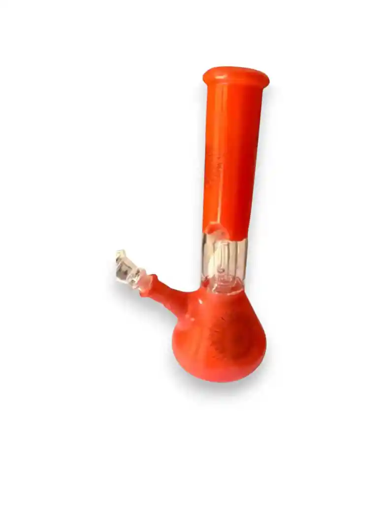 Este bong es un accesorio de vidrio artístico soplado, con diseño curvo estilo “cuello de cisne” y base redonda tipo esfera. Tiene detalles en tonos rojos y dorados que le dan un acabado elegante y llamativo. 🔥