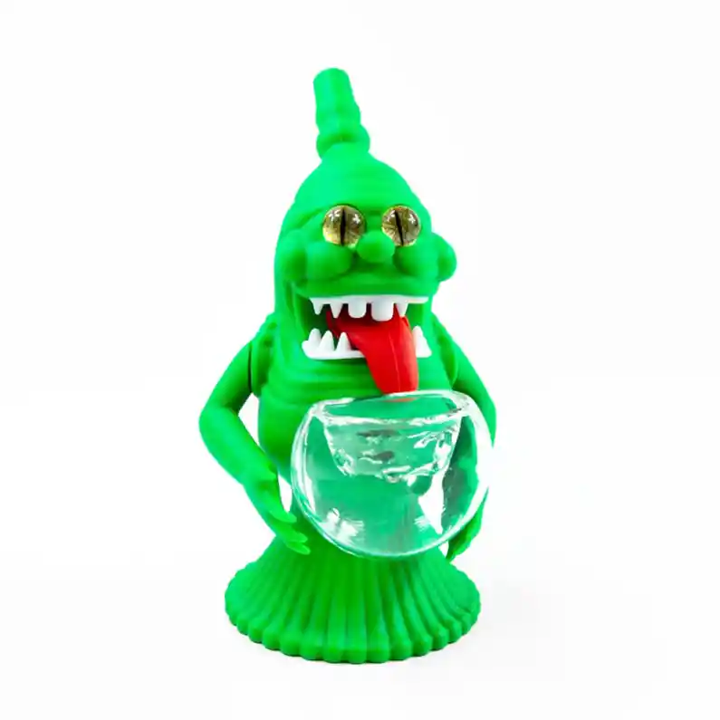 Este Bong Monstruoso de Slime tiene una cara malvada y ojos que parecen seguirte por toda la habitación! También podría recordarte a alguna película clásica Características: Se desmonta para facilitar la limpieza. Boquilla de vidrio extraíble Aproximadamente 16 cm de alto Diámetro de boquilla 5cms en forma Ovalada