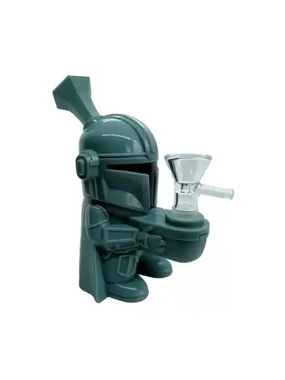 Pipa de Agua - Bong en silicona y boquilla de Vidrio Diseñado con la forma Mandalorian, este bong agrega un toque de diversión a tus sesiones. Materiales: La silicona proporciona durabilidad y resistencia, mientras que la boquilla de vidrio garantiza un sabor puro y limpio. La silicona es fácil de mantener y la boquilla de vidrio se desmonta para una limpieza sencilla, manteniendo tu bong en óptimas condiciones. Tamaño: - 13 Cm de Alto - 7 Cm de diámetro