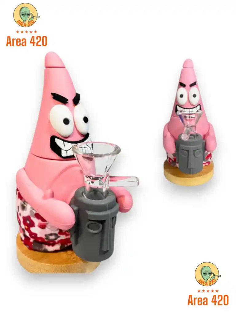 Pipa de vidrio diseño Patrick, divertida, compacta y resistente. Perfecta para quienes buscan un accesorio diferente y llamativo.