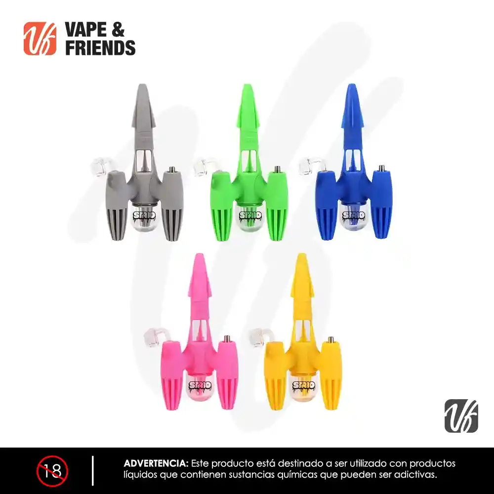 El BONG STRIO SKYLAB es un aparato versátil y llamativo que se adapta perfectamente tanto para ceras como para hierbas secas. Además, es ideal tanto para fumadores experimentados como para principiantes. Por lo tanto, ofrece una solución todo en uno que simplifica tu experiencia de fumar. Su diseño vibrante garantiza que este dispositivo sea la pieza central de cualquier colección. Construido con Materiales de Alta Calidad Fabricado con silicona duradera de grado médico, el Sky Lab está diseñado para durar. Este material no solo asegura una larga vida útil, sino que también facilita la limpieza. Así, se convierte en la opción perfecta para quienes valoran la higiene en su equipo de fumar. Además, su diseño fácil de desmontar hace que la limpieza sea rápida y sencilla. Funcionalidad Todo en Uno Lo que realmente distingue al Sky Lab es su increíble versatilidad. Equipado con un recolector de néctar y diversos accesorios, como un banger de cuarzo macho de 14 mm, un clavo de titanio de 10 mm para ceras, y un portaobjetos de hierbas macho de 14 mm, puedes disfrutar de cualquier tipo de material sin complicaciones. Ya sea que prefieras ceras, dabs o hierbas secas, el Sky Lab lo tiene cubierto. Diseño Impactante que Captura la Atención El diseño del Sky Lab no solo es atractivo, sino que también es funcional. Su forma inspirada en un cohete y sus colores vibrantes lo convierten en un espectáculo digno de contemplar. Esto lo convierte en un excelente iniciador de conversaciones, perfecto para disfrutar solo o en compañía de amigos. Caladas Suaves y Limpias Este dispositivo también garantiza caladas suaves y limpias. Gracias a su material de silicona de grado médico, no se producen sabores ni residuos no deseados. Además, la filtración de agua asegura que cada calada sea más placentera, elevando tu experiencia de fumar a un nuevo nivel. Fácil de Usar y Perfecto para Llevar El Sky Lab es increíblemente fácil de usar. Simplemente agrega agua a la cámara, carga tu material y comienza a fumar. Su tamaño compacto facilita el transporte, convirtiéndolo en el dispositivo ideal para llevar contigo a cualquier lugar. Asimismo, cambiar entre diferentes materiales es sencillo gracias al recolector de néctar y al tobogán para hierbas incluidos.