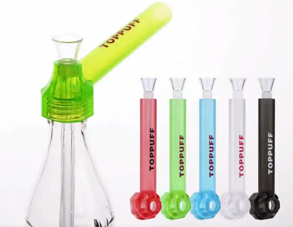 Bong Toppuff Fácil Transporte - Elaborado en Acrilico y Vidrio - Boquilla en vidrio - Puedes armar tu bong con cualquier botella a la que lo puedas ajustarlo - Desarmable, portatil y discreta - Con esta compra te obsequiamos 1 paquete de mallas de 5 unidades - Colores Surtidos Si quieres alguno en especial nos puedes escribir :D - Tamaño: 12 cms de Alto