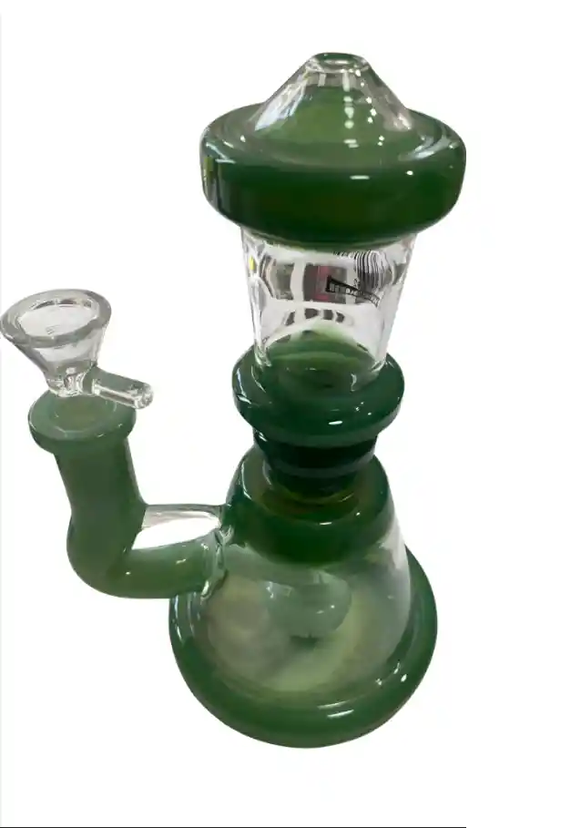 Bong de vidrio farol verde, diseñado para ofrecer la mejor experiencia de consumo. Disfruta al máximo tus sesiones favoritas con la pureza y calidad que solo el vidrio auténtico puede proporcionar.