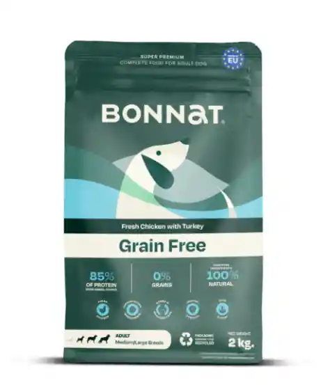 Alimento Super Premium Grain-Free, con un 85% de proteína de origen animal y 0% de granos. Elaborado con ingredientes 100% naturales, este alimento está especialmente formulado para adultos de Medium large, desde los 12 meses. Ayudará a los adultos a consumir su comida de manera óptima, a crecer sanos y fuertes, lucir un pelaje sedoso y brillante, y desarrollar huesos de manera excelente. Su sistema inmunológico también estará activo para asegurar su salud durante esta etapa crucial de desarrollo.