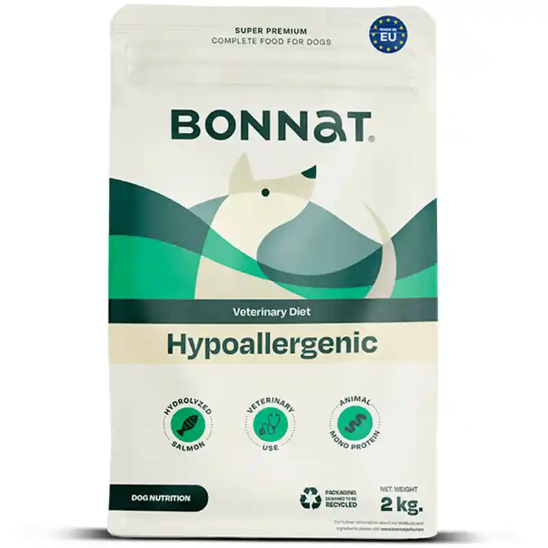 Con 18% de proteina, salmon hidrolizado que es una fuente altamente digestible de proteinas, producido naturalmente; como unica fuente de proteina animal, ayuda a los perros a mejorar los sintomas de la intolerancia a otras proteinas animales, como caida de pelaje, sensibilidad digestiva, comezon y piel fragil