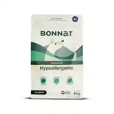 Bonnat Hypoallergenic (perro/gato) es un alimento de prescripción veterinaria diseñado para tratar alergias alimentarias y sensibilidades cutáneas/digestivas. Utiliza proteína hidrolizada (salmón) y carbohidratos seleccionados para reducir reacciones adversas, mejorando la salud de la piel y el pelo. Es ideal para dietas de eliminación y mejora la digestión. Indicaciones: Dermatitis alérgica, intolerancias alimentarias, problemas digestivos (vómitos, diarreas) y caída de pelo. Ingredientes clave: Generalmente incluye salmón hidrolizado, arroz, patata dulce y aceite de salmón (omega 3). Beneficios: Proteína de fácil digestión, alta palatabilidad, refuerzo de la barrera cutánea. Uso: Dieta de prescripción, generalmente recomendada de 3 a 8 semanas, bajo supervisión veterinaria. Presentaciones: Comúnmente en sacos de 2kg. Esta dieta ayuda a prevenir el picor y las molestias digestivas al evitar alérgenos comunes.