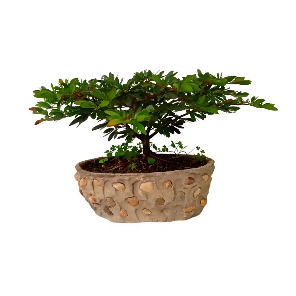 *El bonsái Carbonero es una planta de crecimiento rápido, con hojas perennes bipinnadas, delgadas, muy verdes y de agradable olor que se cierran en condiciones de poca luz o falta de agua. De espectacular floración, las flores presentan numerosos estambres largos y finos de forma cilíndrica, siendo sus flores de color rojo o blanco; similares a escobillas o plumeros. Los frutos nacen en forma de vainas y al madurar se abren, dejando escapar las semillas. *Altura Aprox 40cms *Maceta del bonsai decorada *Cuidados: Necesita mucha luz, aunque debe evitarse exponerlo al sol directo en las horas más altas del día. *Riego: El riego debe ser diario
