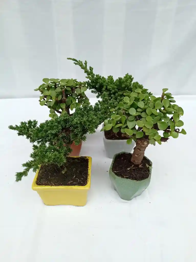 EL BONSAI PUEDE SER EN MATERA DE CERAMICA O DE PIEDRA Y LA ESPECIE PUEDE SER BUXUS, PINO NANA O JADE, DEPENDE DE LA DISPONIBILIDAD•SUSTRATO: Tierra fértil con humus de lombriz. Al requerir humedad constante puedes mezclar la tierra con turba para incrementar la absorción de agua.•MATERAS: Contenedores de cualquier material, plástico, barro o vidrio.•RIEGO: Todos los días con agua de lluvia preferiblemente o agua reposada mínimo 1 día.•LUZ: Requieren sol directo a luz parcial, al lado de la ventana o un sitio donde tenga buena luz.RECOMENDACIONES:*Hacer corte de raíz cada 2 años para que el árbol se quede enano.*Hacer corte del follaje cada vez que se requiera para dar forma al árbol. También se puede abonar con humus de lombríz líquido cada 15 días.