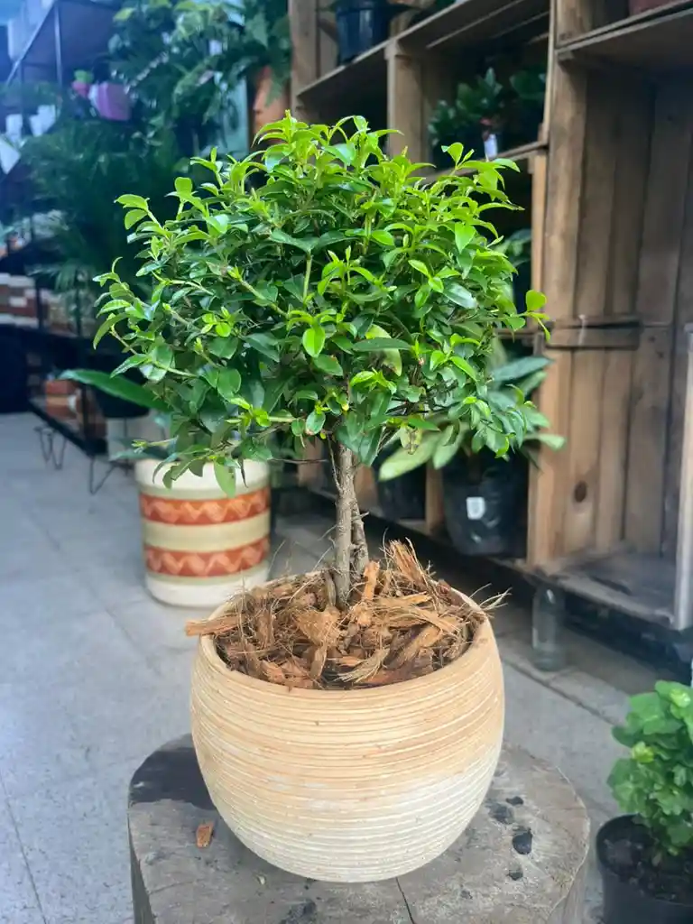 Bonsái Arrayán Manizaleño en matero de barro Planta de exterior El bonsái de Arrayán Manizaleño es una pieza viva que representa tradición, paciencia y conexión con la naturaleza. Con tres años de formación, este bonsái destaca por su forma armoniosa y su carácter ornamental, ideal para terrazas, jardines y espacios exteriores que buscan un toque natural y auténtico. Viene en matero de barro, un material clásico que favorece su estética y resalta su esencia artesanal. Es perfecto para quienes valoran el arte del bonsái y desean integrar un elemento natural con historia y personalidad en sus espacios. ✨ Un detalle vivo que crece contigo y embellece cada entorno.