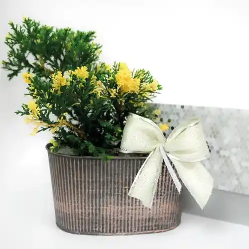 Envíos de lunes a viernes, nuestros tiempos de entrega son entre 1 y 3 días hábiles después de realizar la compra, según la disponibilidad y teniendo en cuenta que no se realizan envíos los sábados, domingos o festivos. El bonsái es un detalle especial e ideal para decorar cualquier espacio. Esta planta natural varia entre pinos y arboles frutales dependiendo de la disponibilidad. El bonsái esta plantado en una cubeta metálica y en un sustrato ideal para su supervivencia, y tiene una decoración en piedras. El bono está elaborado en papel majestic de 250gr., en diferentes tonalidades y estampados dependiendo de la disponibilidad, la medida es de 17,5 cm x 24,5 cm La parte interna del bono viene con una tarjeta impresa con el logo de la Fundación en una medida de 16,5 cm x 24 cm con un mensaje de condolencia. La caja viene decorada con un moño en cinta de Yute o cinta Lurex.
