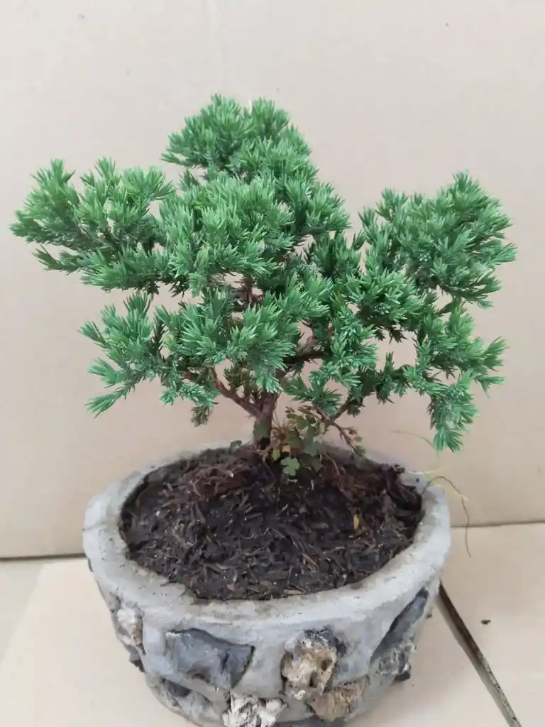 BONSAI NATURAL DE PINO NANA 20-23 CM DE ALTO X 12-15 CM DE ANCHO? EN MATEERA ARTESANAL DE CEMENTO Y PIEDRA