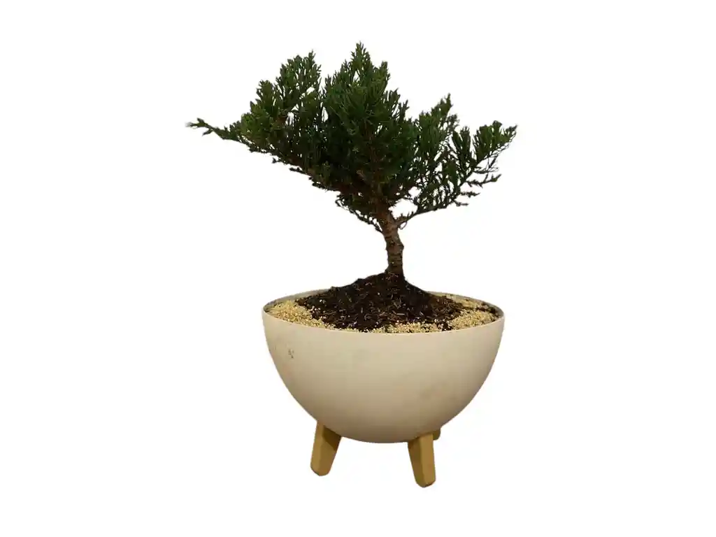 Bonsai Pino, es una especie de Pino llamada pino San Jose, matera plastica en color blanca o dorada, requiere un espacio donde reciba sol de 4 a 6 horas en el dia, puede estar ubicado cerca a una ventana o en un balcon, el riego es de 3 veces por semana en promedio por dia de 250 ml, el bonsai ya cuenta con mas de 5 años de tener la tecnica del bonsai, por lo tanto es una planta super resistente.