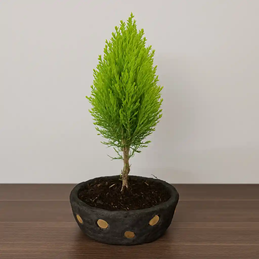Con su inconfundible aroma cítrico y su color verde vibrante, el Píno Dorado es una opción refrescante y revitalizante para cualquier espacio. Este bonsái no solo destaca por su belleza, sino también por su capacidad de purificar el aire y generar una sensación de frescura natural. De forma piramidal y follaje denso, es ideal para decorar interiores luminosos o balcones. Aporta un aire de limpieza, orden y energía positiva. Requiere riego moderado y luz solar indirecta.