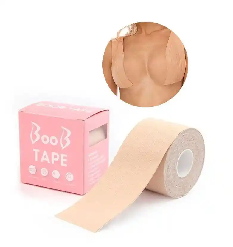 BOOB TAPE - Cinta Levanta Busto Adhesiva Invisible Push Up Cinta adhesiva invisible, realza y cubre el seno. - Levanta Busto Adhesivo fácil de usar. - 5 Metros de largo * 5 Centímetros de ancho - Color: Nude (Piel) - Ideal para lucir cualquier escote o strapless. Características: 1. Hipoalergénico. 2. Sin látex. 3. Rollo de 5 metros cortable. 4. Usa atuendos que no pudieras usar antes porque ahora puedes ir sin sujetador. 5. Contra el agua, perfecto para llevar debajo del traje de baño. 6. Lo adaptas a tu cuerpo. 7. No dolor al quitarla. 8. Tejido de algodón elástico. 9. Talla única. Modo de empleo: 1. Corta la cinta al tamaño deseado y aplícala sobre la piel limpia y seca, sin aceites ni cremas. 2. Es ideal para blusas o vestidos de corte bajo, eventos especiales. 3. Hay varias formas de colocar a gusto y dependiendo de prenda y ocasión, se incluye una imagen de referencia. 4. Para despegarlo simplemente de una esquina, comience a estirarlo si es necesario, aplique un poco de agua para hacerlo más fácil. Ancho: 5 cm Longitud: 5 mts Color: Piel (Nude) SIN CAJA
