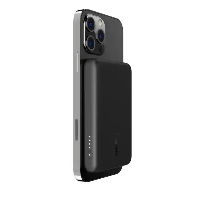-Una rápida carga parcial magnética- -Esta batería externa inalámbrica aprovecha al máximo la tecnología MagSafe y está diseñada para no bloquear la cámara de tu iPhone 13. Disfrutarás de la funcionalidad completa de tu teléfono mientras lo cargas. Perfecta para ir de vacaciones o al trabajo esta batería fina y portátil suministra una carga parcial rápida dondequiera que vayas. Una luz LED te informa si es necesario llenar la batería y su función passthrough te permite cargar simultáneamente la batería y tu teléfono. En un vistazo -Carga inalámbrica compatible con MagSafe para la serie iPhone 13. -La batería externa se alinea magnéticamente siempre a la perfección con el iPhone 13. -Sigue usando el teléfono, y su cámara, mientras lo cargas. -Llena la batería a la vez que cargas el teléfono gracias a la función passthrough. -2500 mAh de potencia para cargar parcialmente tu dispositivo a gran velocidad. -Compatible con las fundas oficiales MagSafe. -La luz LED informa si es necesario recargar la batería. -Adaptador de alimentación no incluido.