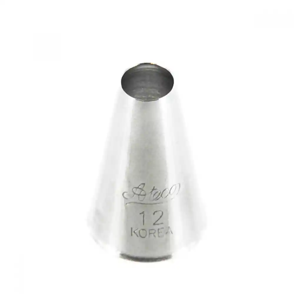 Boquilla de punto o punta redonda, ideal para hacer puntos, bolas, bordes, punto perdido, bordados, trabajos de extensión, cuerdas y trazados. Acero Inoxidable. Medidas Base 1.8 cm Apertura 0.8 cm