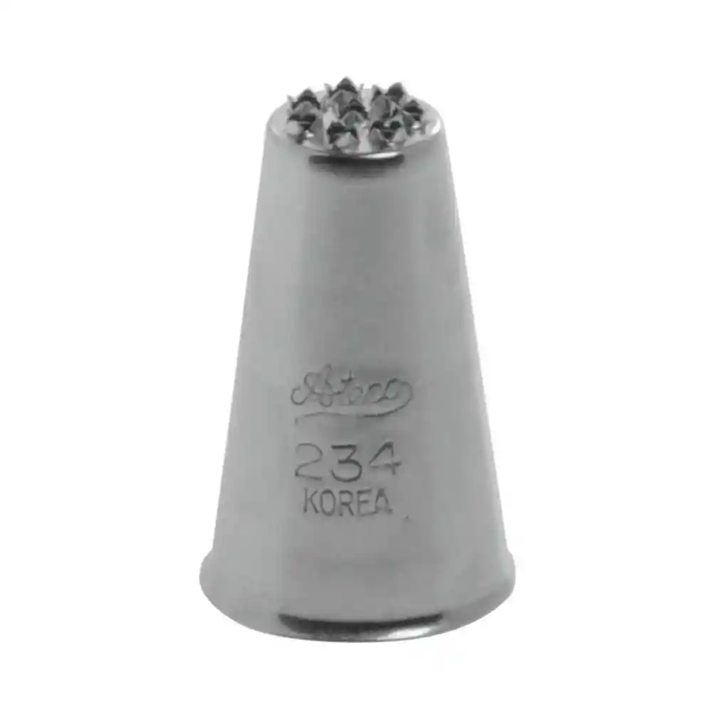 Boquilla Ateco con Puntas de apertura múltiple para formar cuerdas, lasos, pelo y pasto en tortas novedosas, ideal para decorar tus tortas, cupcakes, pasteles, galletas y brownies. Puede ser utilizado con un acoplador estándar. Fabricadas en una sola pieza en acero inoxidable. Apto para lavavajillas Medidas Base 2.5 cm Apertura 1.5 cm